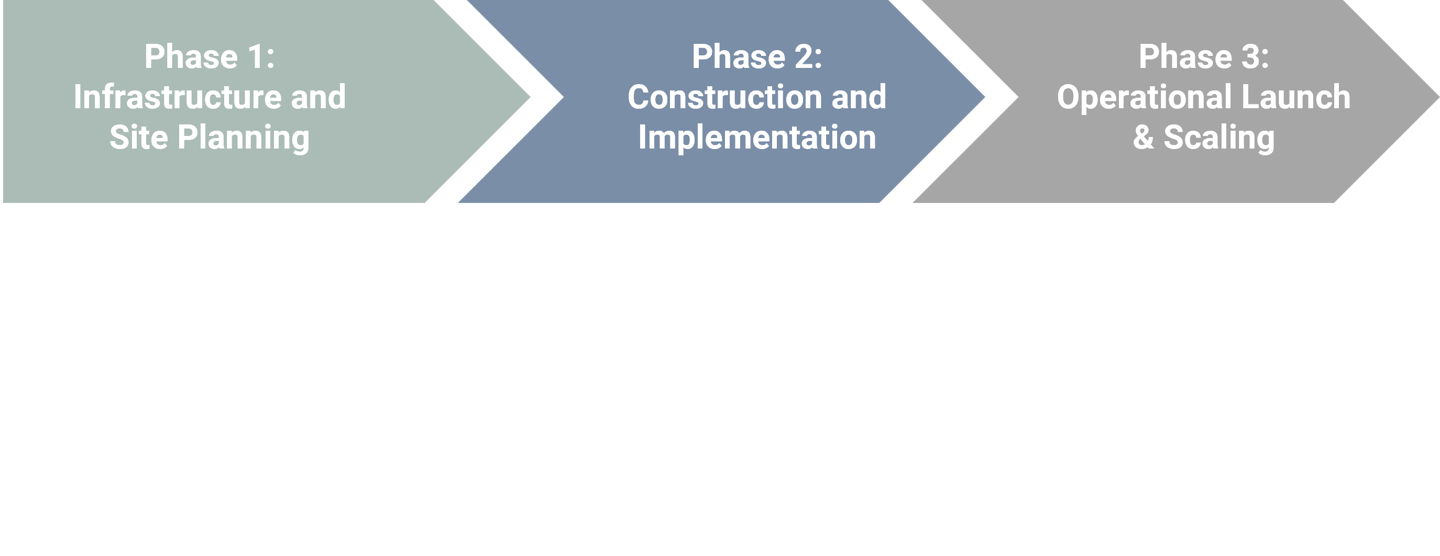 We are currently in the infrastructure planning phase, with the following development milestones: